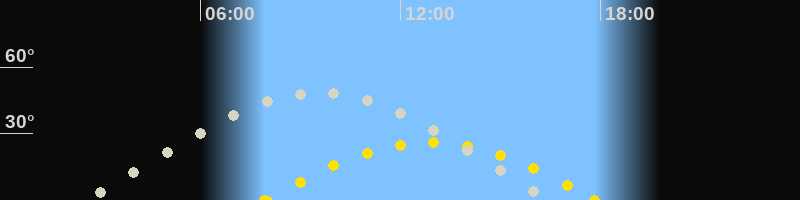 | Höchster Sonnenstand (Kulmination) | 12:54 Uhr (h = 26°) |