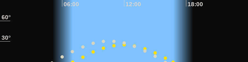 | Höchster Sonnenstand (Kulmination) | 11:53 Uhr (h = 25°) |