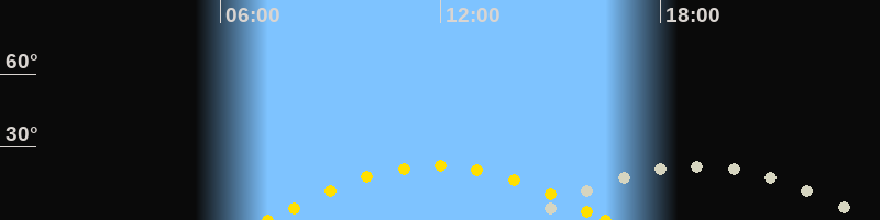 | Höchster Sonnenstand (Kulmination) | 11:54 Uhr (h = 22.3°) |