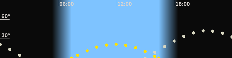 | Höchster Sonnenstand (Kulmination) | 11:54 Uhr (h = 21.5°) |