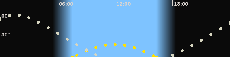| Höchster Sonnenstand (Kulmination) | 11:55 Uhr (h = 20°) |