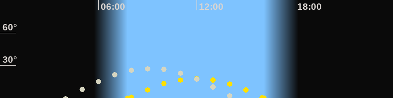 | Höchster Stand (Kulmination) | 09:13 Uhr (h=27.5°) |