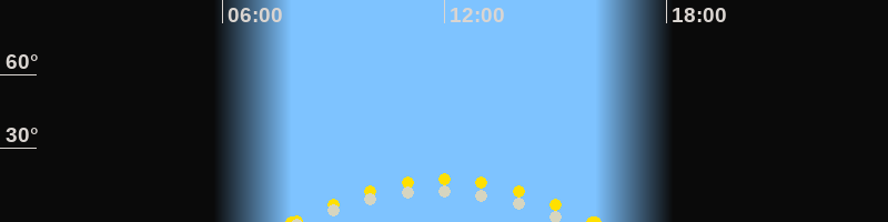 | Höchster Sonnenstand (Kulmination) | 11:59 Uhr (h = 17.4°) |