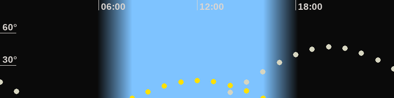 Höchster Sonnenstand (Kulmination)12:03 Uhr (h = 16.3°)