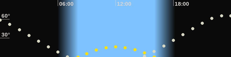 | Höchster Sonnenstand (Kulmination) | 12:05 Uhr (h = 16°) |