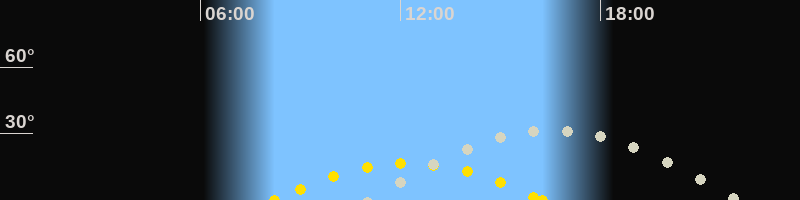 | Höchster Sonnenstand (Kulmination) | 12:15 Uhr (h = 16.6°) |