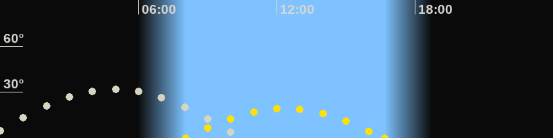 | Höchster Sonnenstand (Kulmination) | 12:21 Uhr (h = 19.4°) |