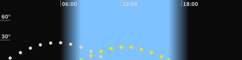 | Höchster Sonnenstand (Kulmination) | 12:21 Uhr (h = 19.6°) |