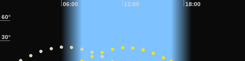 | Höchster Sonnenstand (Kulmination) | 12:22 Uhr (h = 19.9°) |