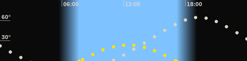 | Höchster Stand (Kulmination) | 19:15 Uhr (h=64.5°) |
