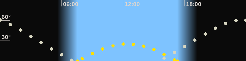 | Höchster Sonnenstand (Kulmination) | 12:24 Uhr (h = 25.3°) |