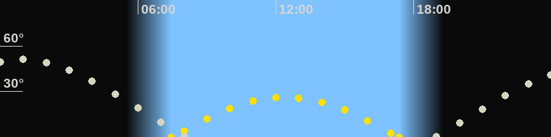 | Höchster Sonnenstand (Kulmination) | 12:24 Uhr (h = 26.3°) |