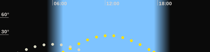 | Höchster Sonnenstand (Kulmination) | 12:23 Uhr (h = 28.8°) |
