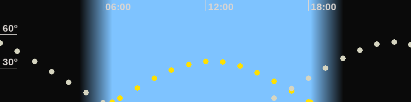 Sonnenuntergang18:07 Uhr im Westen (αAz = 265.7°)