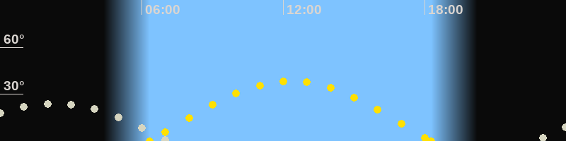 Höchster Sonnenstand (Kulmination)12:18 Uhr (h = 38.4°)