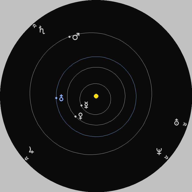 f Merkur g Venus l Erde h Mars j Jupiter S Saturn A Uranus G Neptun