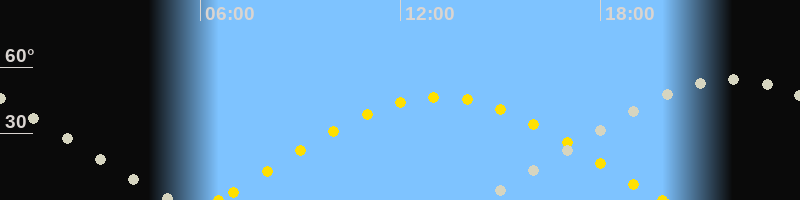 | Sonnenaufgang | 06:33 Uhr im Osten (αAz = 78°) |