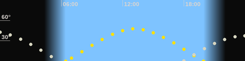 | Höchster Sonnenstand (Kulmination) | 13:11 Uhr (h = 47.7°) |