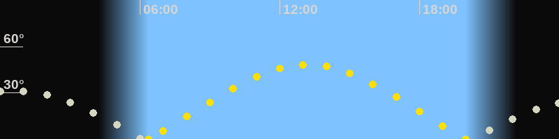Höchster Sonnenstand (Kulmination)13:10 Uhr (h = 48.4°)