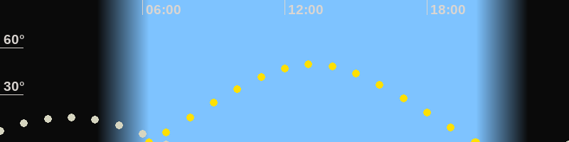 | Sonnenaufgang | 06:16 Uhr im Osten (αAz = 73.3°) |