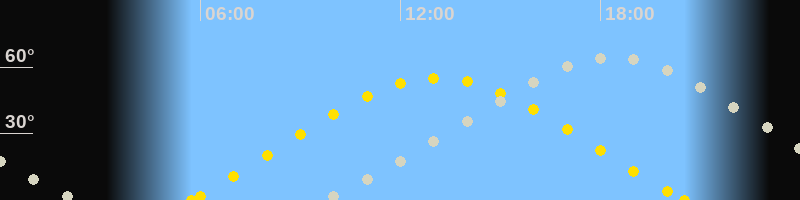 | Höchster Sonnenstand (Kulmination) | 13:07 Uhr (h = 55°) |