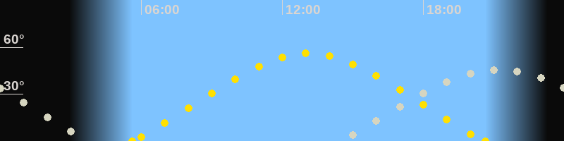 | Höchster Sonnenstand (Kulmination) | 13:06 Uhr (h = 56.1°) |