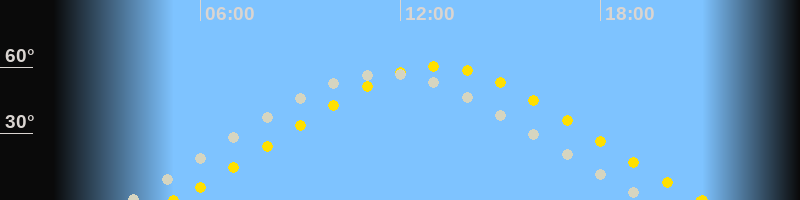 | Höchster Sonnenstand (Kulmination) | 13:07 Uhr (h = 60.3°) |