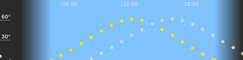 | Höchster Sonnenstand (Kulmination) | 13:07 Uhr (h = 61.2°) |
