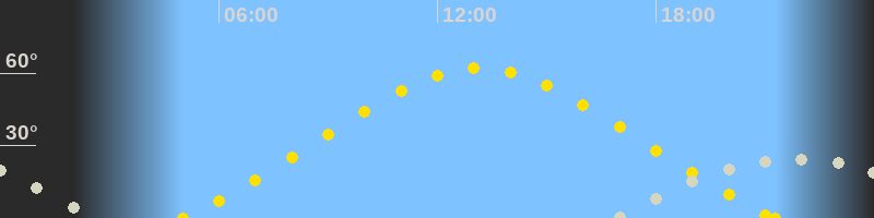| Höchster Sonnenstand (Kulmination) | 13:09 Uhr (h = 62°) |