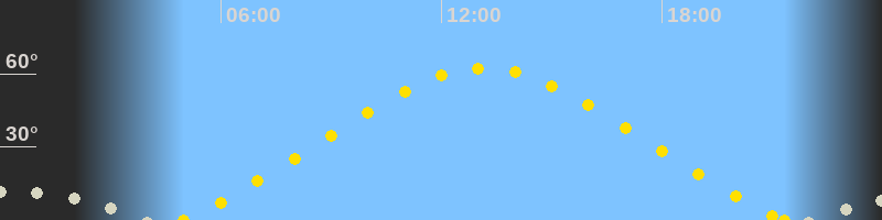 | Höchster Sonnenstand (Kulmination) | 13:09 Uhr (h = 62.4°) |