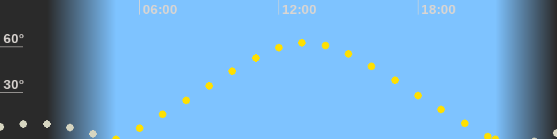 | Höchster Sonnenstand (Kulmination) | 13:10 Uhr (h = 62.4°) |