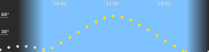 | Höchster Sonnenstand (Kulmination) | 13:10 Uhr (h = 62.5°) |
