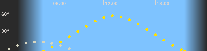 | Höchster Sonnenstand (Kulmination) | 13:10 Uhr (h = 62.6°) |