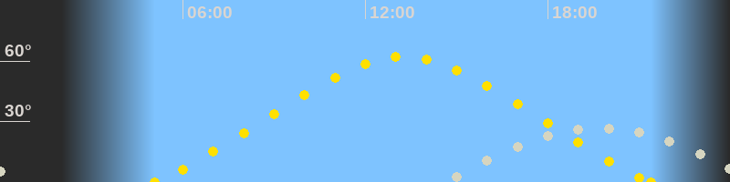 | Höchster Sonnenstand (Kulmination) | 13:14 Uhr (h = 62.1°) |