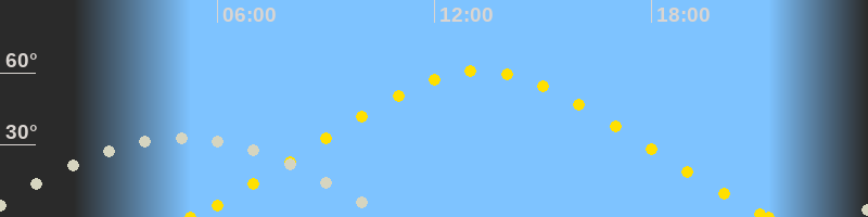 | Höchster Sonnenstand (Kulmination) | 13:16 Uhr (h = 60.8°) |