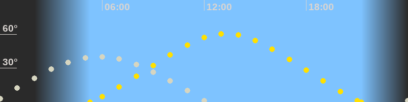 | Höchster Sonnenstand (Kulmination) | 13:16 Uhr (h = 60.6°) |