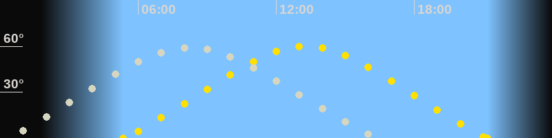 | Höchster Sonnenstand (Kulmination) | 13:16 Uhr (h = 60.1°) |