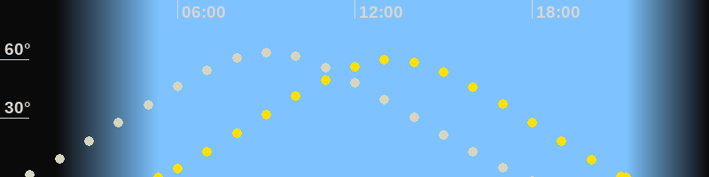 | Höchster Sonnenstand (Kulmination) | 13:16 Uhr (h = 59.9°) |