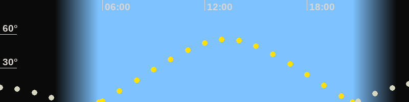 Höchster Sonnenstand (Kulmination)13:15 Uhr (h = 55.4°)