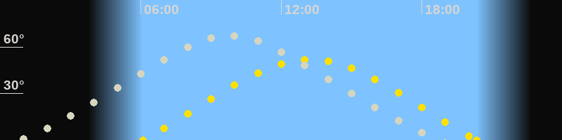 | Sonnenaufgang | 06:05 Uhr im Osten (αAz = 68.7°) |