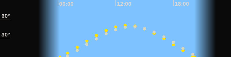 | Sonnenaufgang | 06:12 Uhr im Osten (αAz = 71.5°) |
