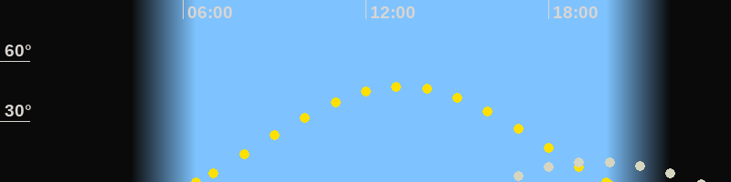 | Sonnenaufgang | 06:25 Uhr im Osten (αAz = 76°) |