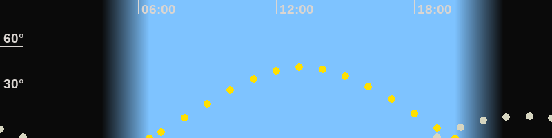 | Sonnenaufgang | 06:29 Uhr im Osten (αAz = 77.8°) |