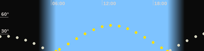 | Sonnenaufgang | 06:34 Uhr im Osten (αAz = 79.6°) |