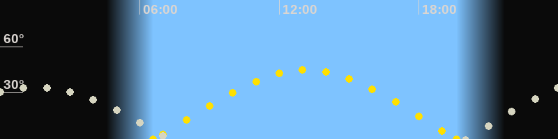 | Sonnenaufgang | 06:35 Uhr im Osten (αAz = 80.2°) |
