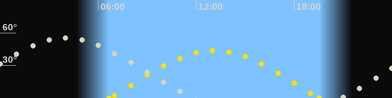 | Höchster Sonnenstand (Kulmination) | 13:06 Uhr (h = 43.8°) |