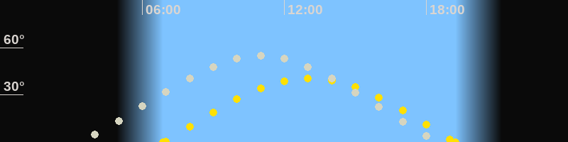 | Höchster Stand (Kulmination) | 11:00 Uhr (h=55.5°) |