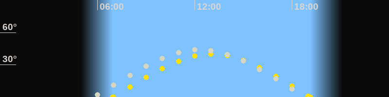 | Höchster Stand (Kulmination) | 12:22 Uhr (h=44.6°) |