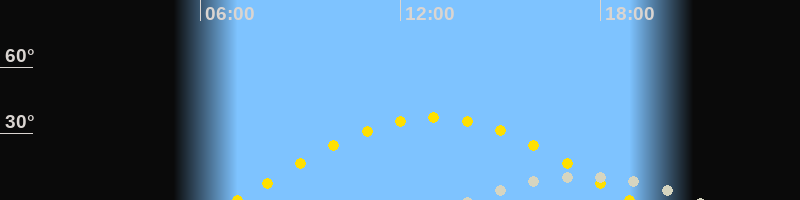 | Sonnenaufgang | 07:06 Uhr im Osten (αAz = 92.4°) |