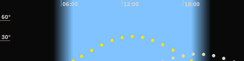 | Sonnenaufgang | 07:10 Uhr im Osten (αAz = 93.6°) |